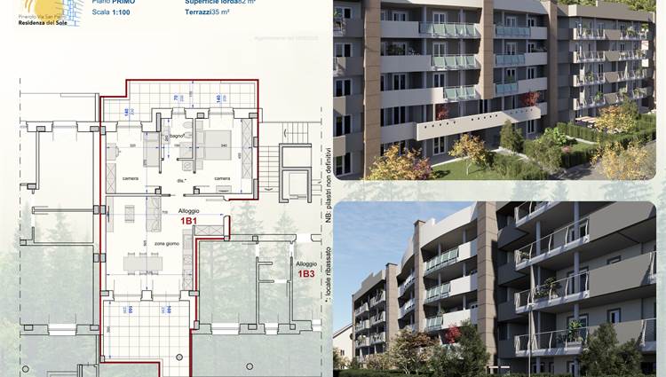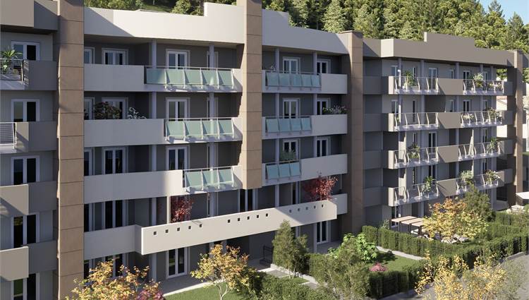 Composizione: Ingresso su ampio soggiorno con cucina a vista, 2 camere, disimpegno, bagno, balcone, terrazzino, cantina e volendo (prezzo a parte), box singoli o doppi
