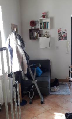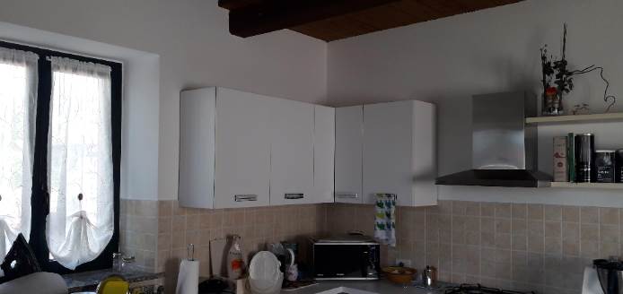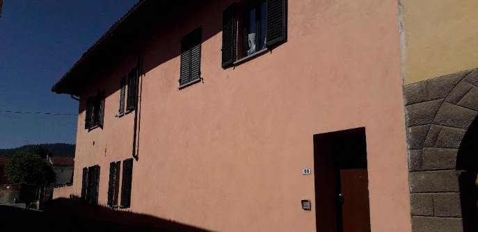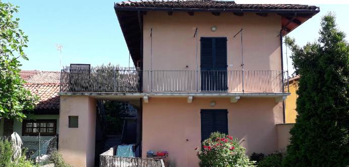 All'interno di fabbricato libero da tre lati, a due piani fuori terra, oltre a sottotetto e vano cantina al piano interrato, con aree esterne destinate in parte a giardino ed in parte a cortile/passaggio e posti auto: alloggio al piano primo con accesso tramite scala esterna esclusiva, composto da soggiorno con tetto in vista con soppalco non abitabile (ex locale sottotetto), angolo cottura, disimpegno, bagno, camera e ampio balcone con piccolo terrazzino d'angolo. All'alloggio spetta la proprietà esclusiva di area esterna al piano terreno oltre posto auto.