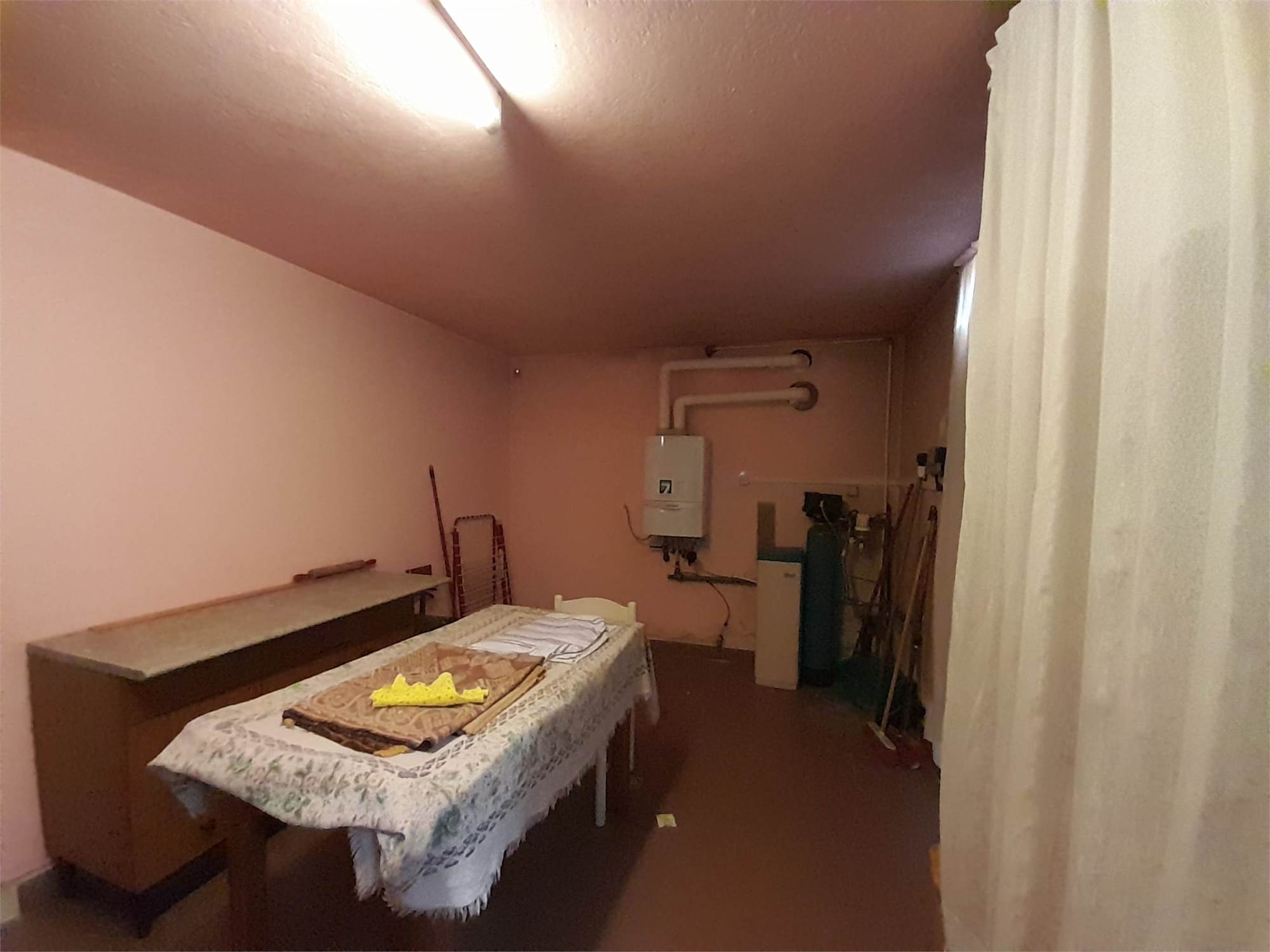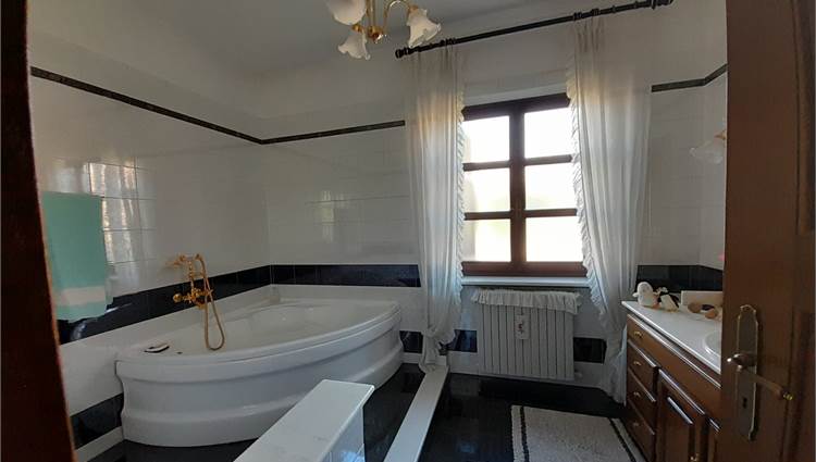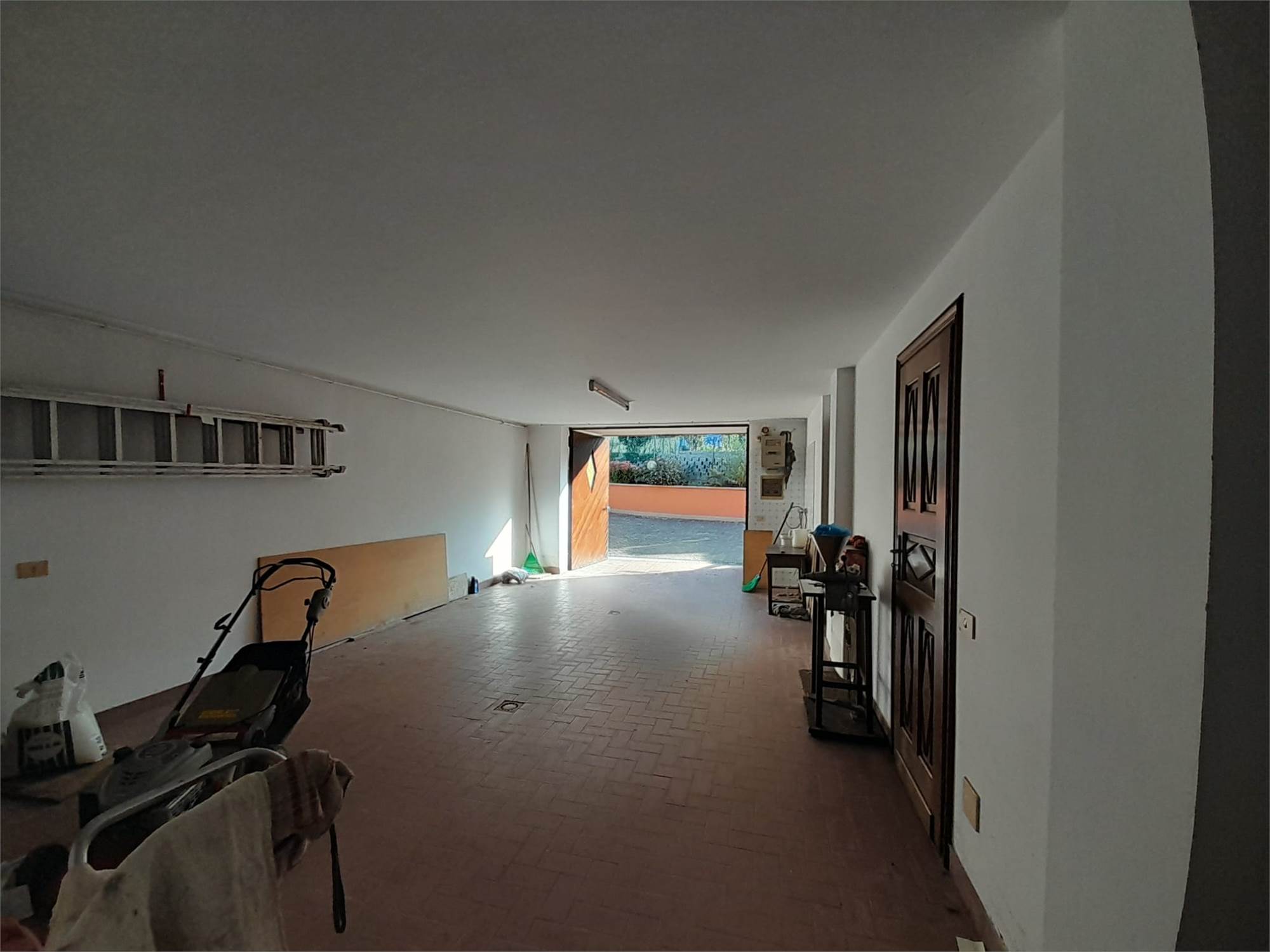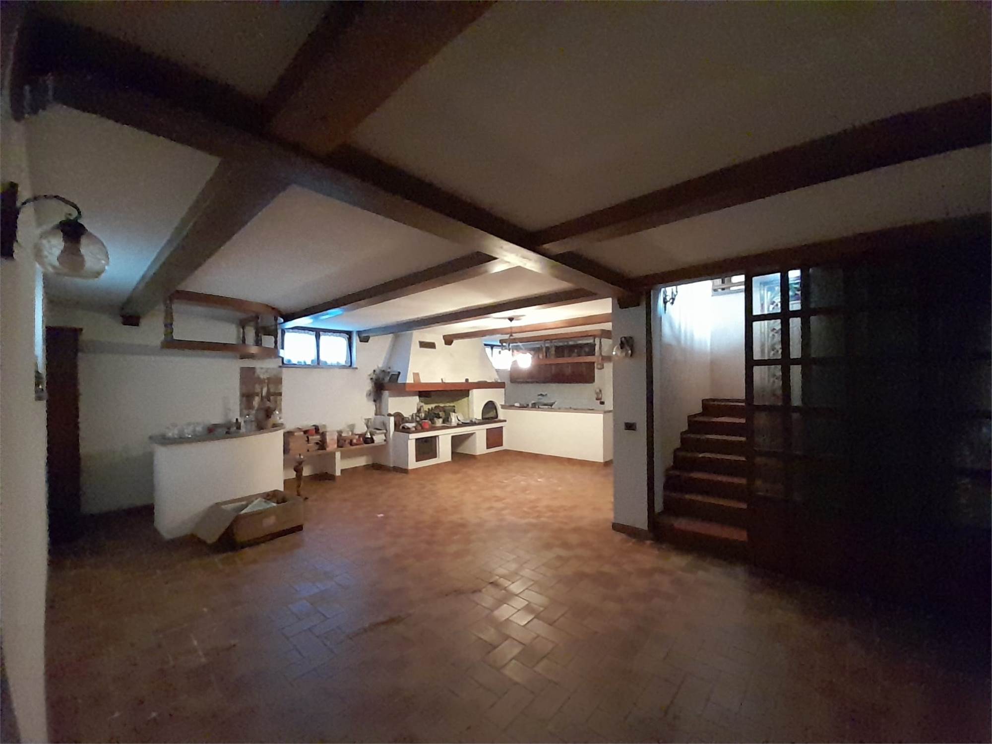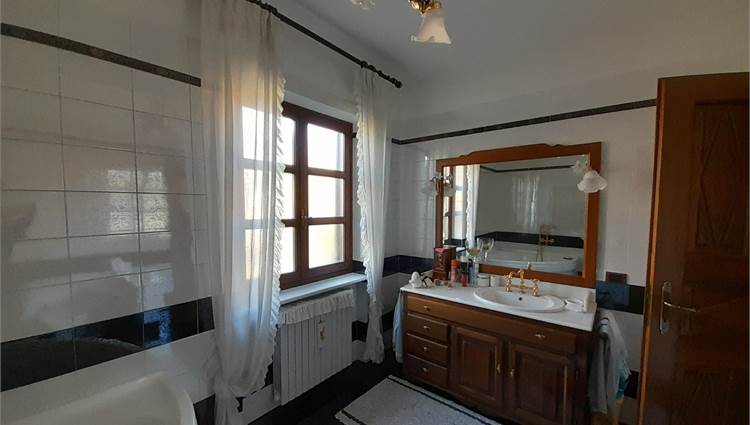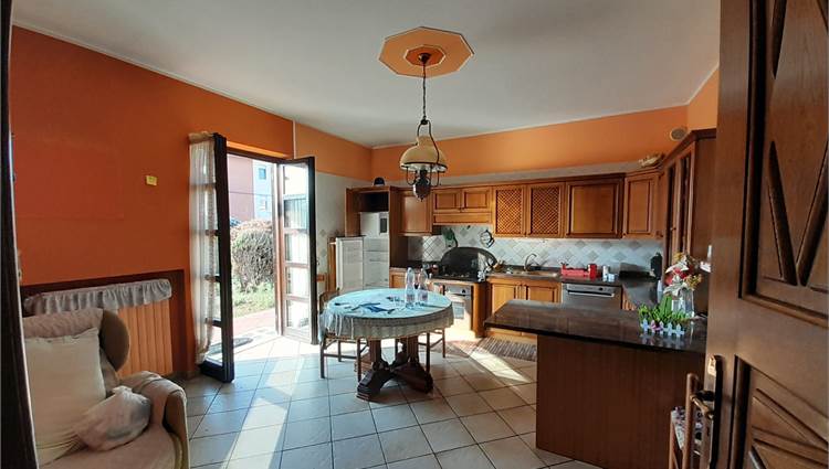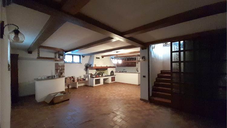 L'immobile è composto da ingresso living su ampio salone, cucina abitabile, due camere da letto doppie e doppi servizi; da scala interna si accede al piano seminterrato composto da una taverna di generose dimensioni, due cantine, un locale lavanderia, il locale caldaia e l'autorimessa per tre auto.
