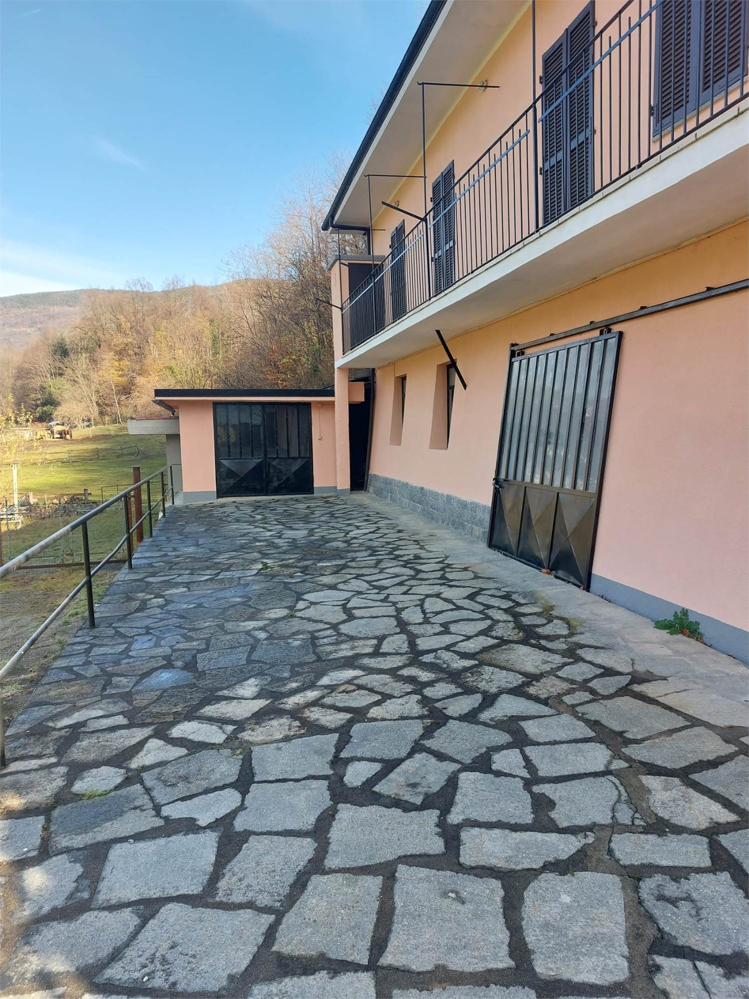 L'immobile è altresì accessoriato di un box auto , un’ampia zona di rimessa coperta e chiusa con portone, un'ampia legnaia, un locale caldaia ed ulteriore zona di deposito nel sottoscala.