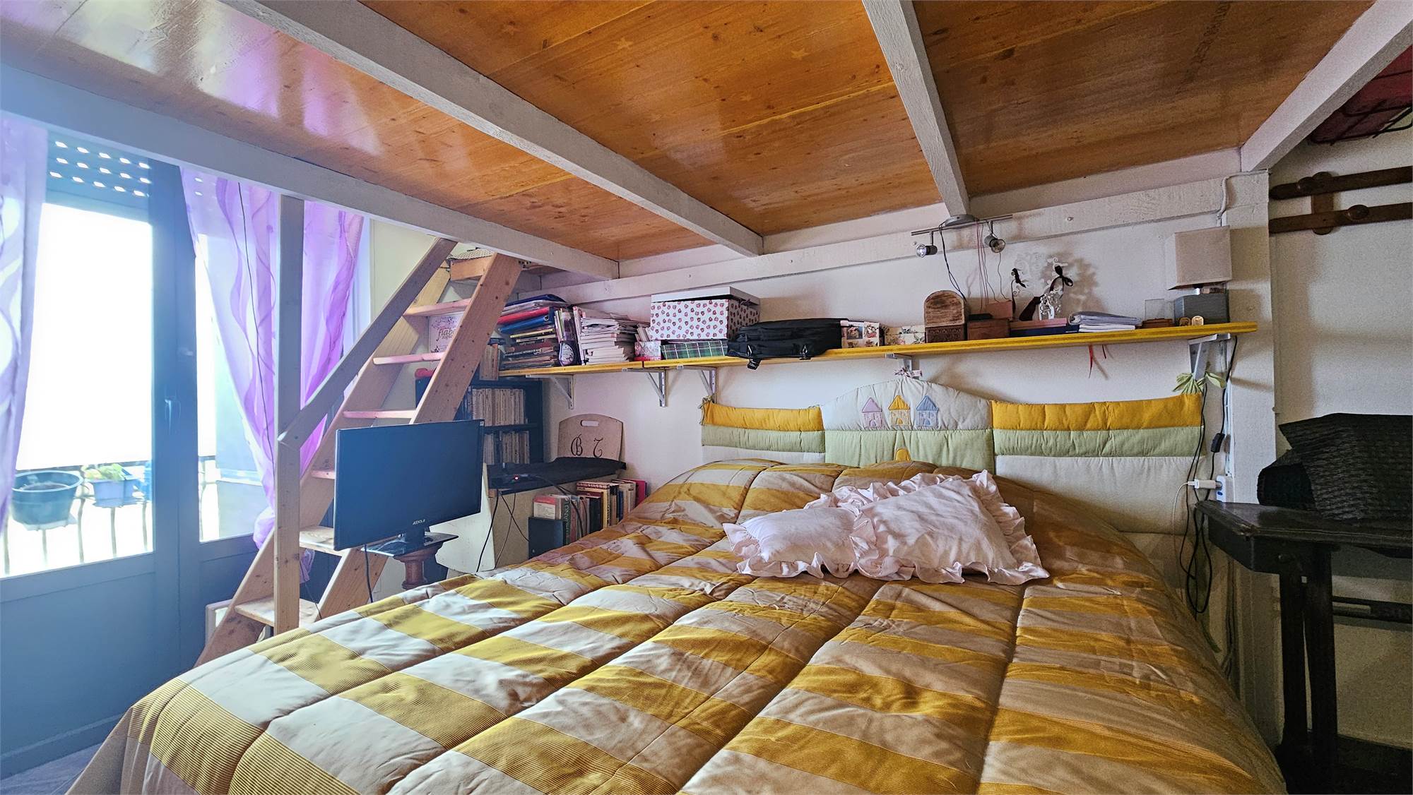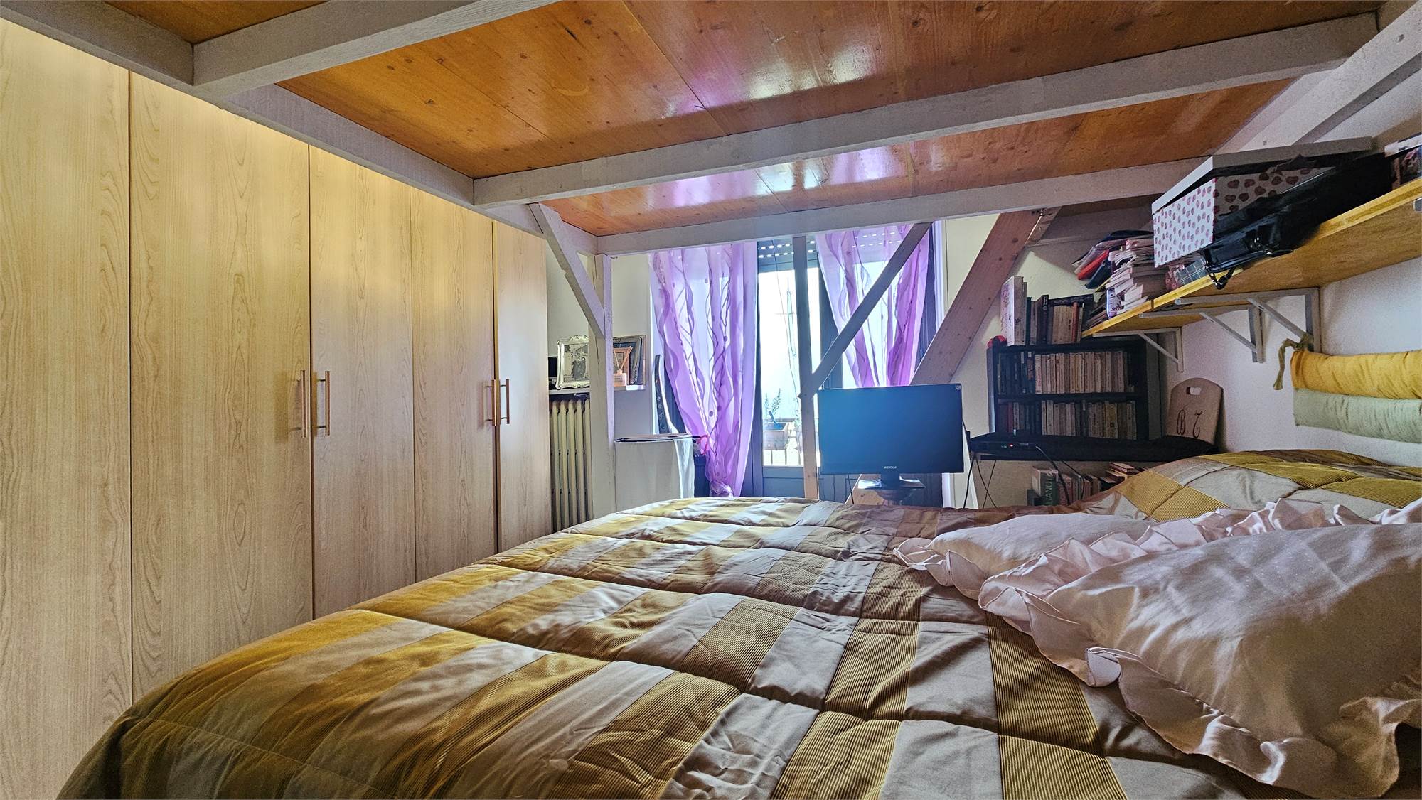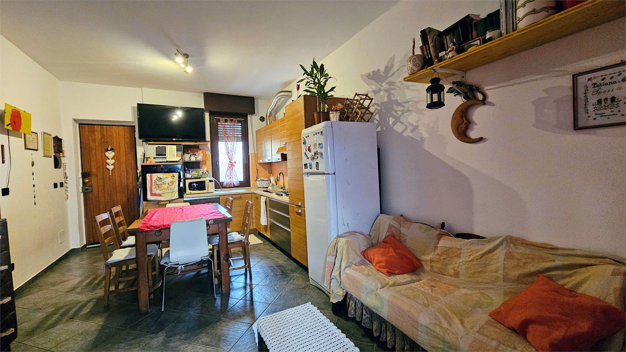 L’abitazione è composta da ingresso su ampia cucina, una camera da letto, bagno, balcone e sottotetto soprastante non collegato, ad uso soffitta. Gli spazi risultano ben distribuiti e l’immobile, ristrutturato circa 18 anni fa, si presenta ben tenuto e pronto all’uso.