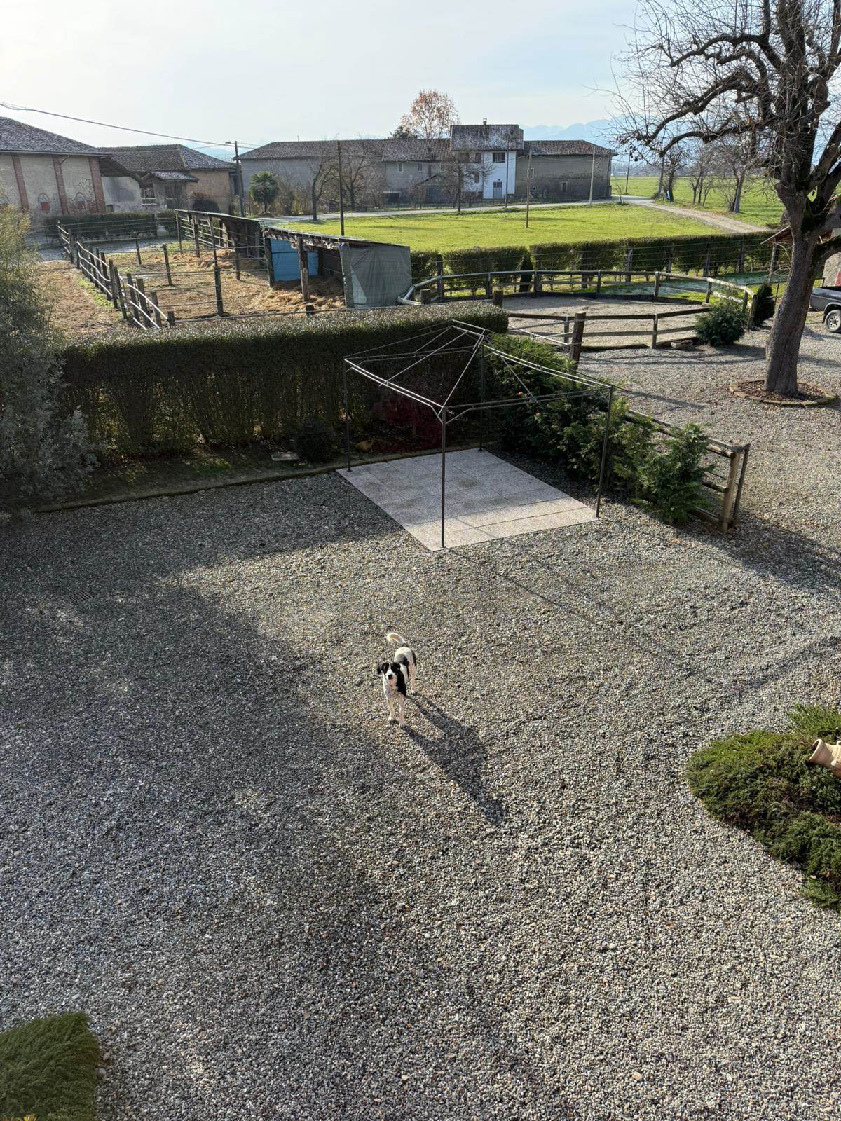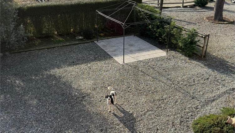 Come già indicato la proprietà consta anche di un terreno adibito a giardino e due ampi box auto , magazzino/ legnaia ed una tettoia chiusa a tre lati