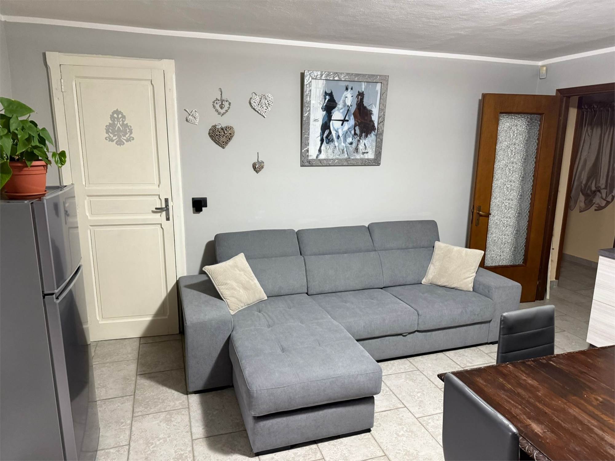 Al piano superiore, accessibile da scala interna, troviamo ulteriori due camere da letto , un ampio balcone ed un servizio dotato di doccia. Comunicante con questo piano, troviamo l’ex stalla , recuperabile a livello abitativo, con progetto già depositato in comune per realizzare due ulteriori stanze ed un bagno.