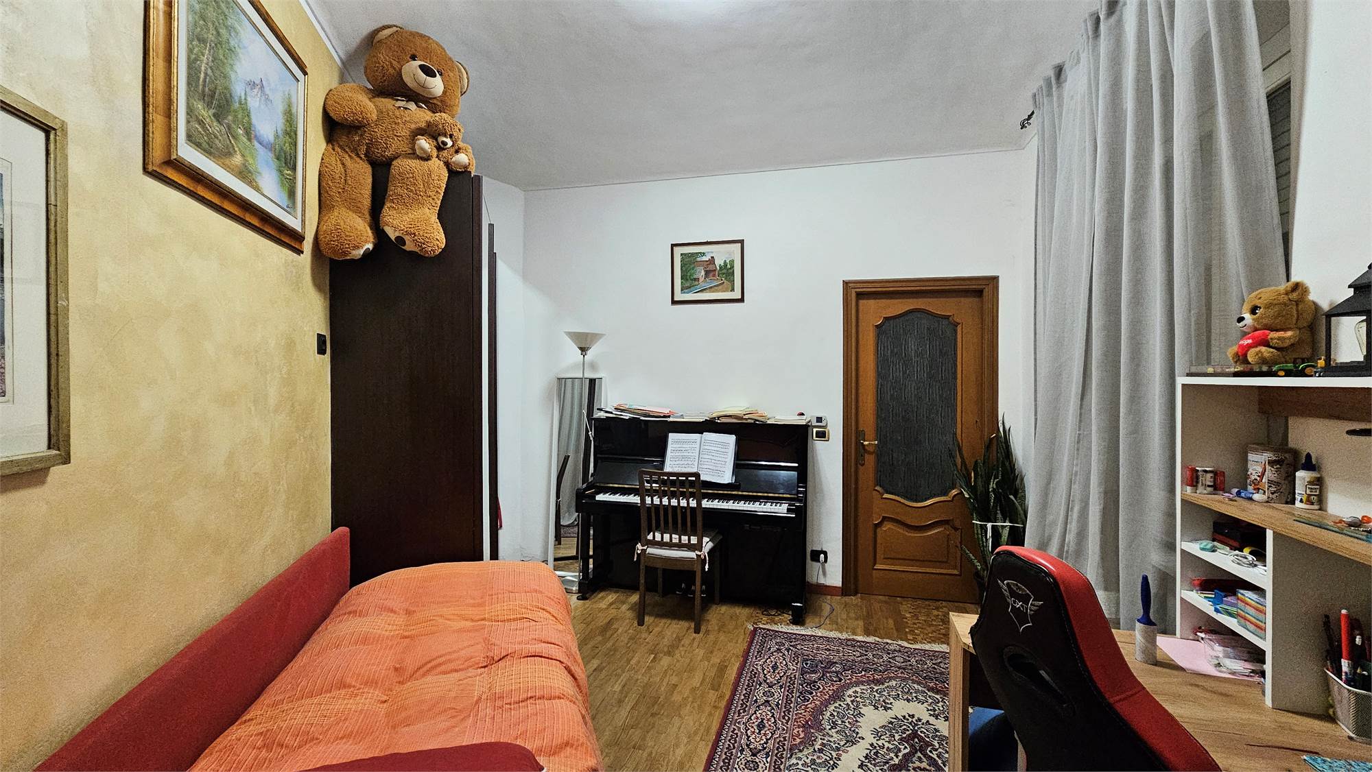 L’abitazione si trova al primo piano senza ascensore e colpisce fin dall’ingresso per gli spazi che offre.