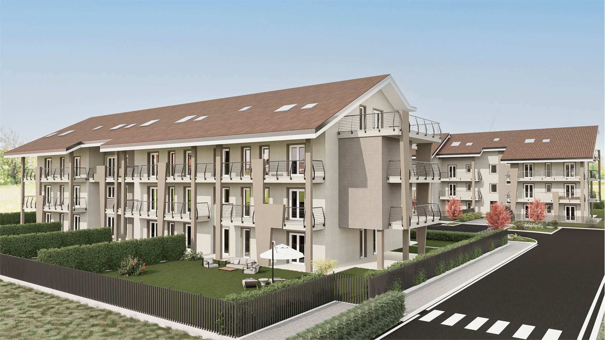 Spazi esterni: Ogni appartamento che sceglierete è dotato di ampi terrazzi e, gli appartamenti al piano terreno, di un giardino privato, dove potrete godere di momenti di relax all'aria aperta, organizzare cene con amici o vivere il vostro angolo verde in città.