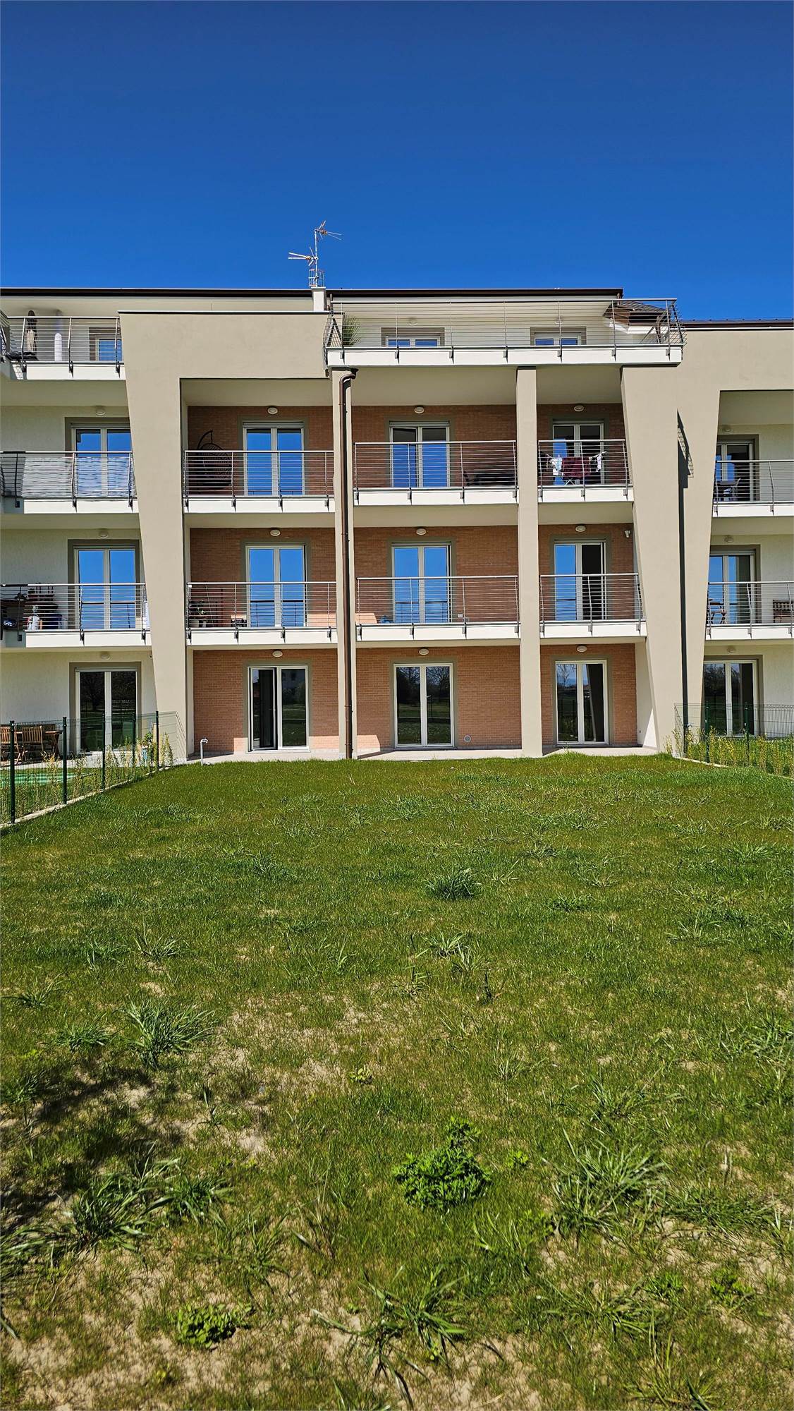 Descrizione: ingresso su salone, cucina, 2 camere, 2 bagni, ripostiglio, ampio loggiato coperto, giardino privato di 331 mq, cantina e volendo, (non compreso nel prezzo proposto), box auto singolo o doppio.