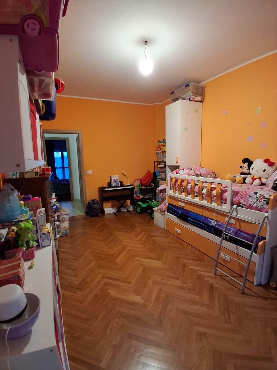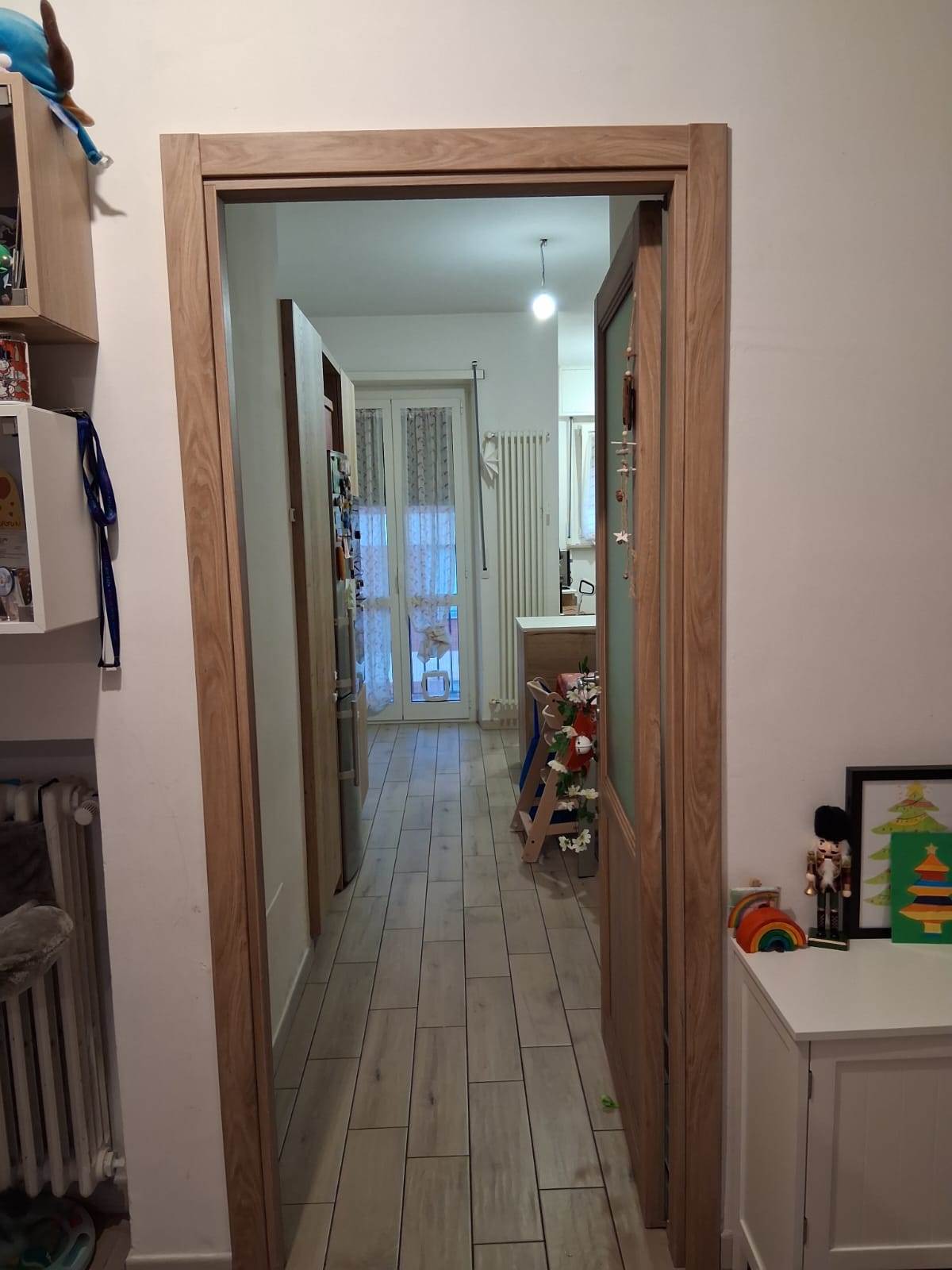 La cucina abitabile, separata e funzionale, dispone anch’essa di un balcone, rendendola particolarmente luminosa e adatta alla vita quotidiana e alla convivialità. La zona notte è ben disimpegnata e composta da due camere da letto ampie e regolari, facilmente arredabili, pensate per garantire comfort e privacy a tutta la famiglia.
